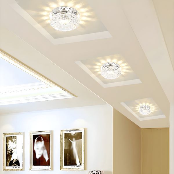 Contemporary Crystal Recessed Downlight, Decorative Flush Mount Ceiling Fixture with Faceted Glass Lens