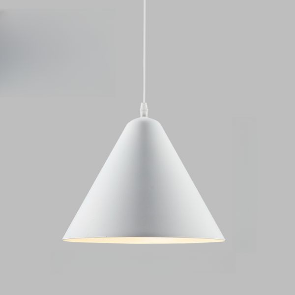 Suspension conique minimaliste nordique, luminaire de plafond suspendu en aluminium mat pour îlot de cuisine, salle à manger, chambre - 110 V-120 V Blanc 25,4 cm