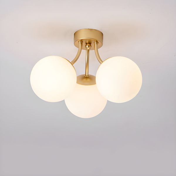 Mid-Century Gold Sputnik Flush Mount Light, Opal Glass Globe Ceiling Fixture - Gold 110V-120V 3