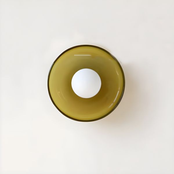 Mid-Century Modern Flush Mount Ceiling Light, Retro Glossy Steel & Opal Glass Fixture for Hallway - Green 110V-120V 10"