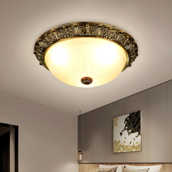 Victorian Vintage Flush Mount Ceiling Light, Ornate Carved Dome Fixture with Frosted Shade - Brass 110V-120V 11"