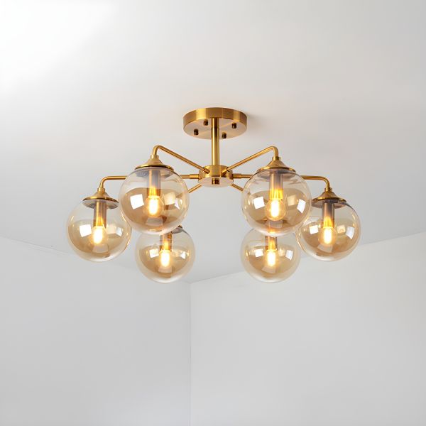Mid-Century Gold Semi Flush Mount Ceiling Light with Tinted Glass Globes - Gold 110V-120V 6 Amber