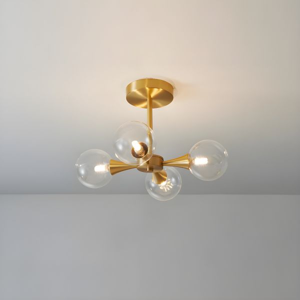 Mid-Century Brass Sputnik Chandelier, Semi-Flush Mount Ceiling Light with Glass Globes - Brass 110V-120V 4 Clear
