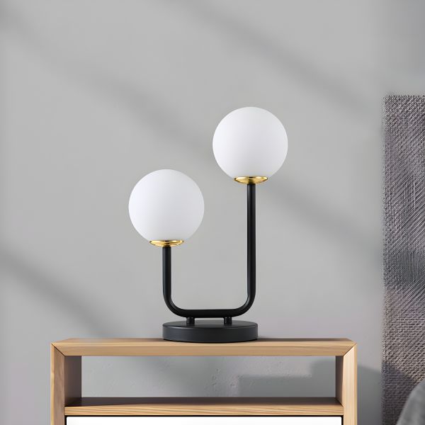 Orb Night Table Lighting Modern Opal Glass 2 Lights Bedroom LED Nightstand Light in Black with U-Shaped Base - 110V-120V Black