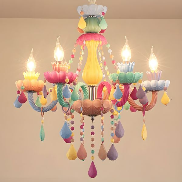Multi-Colored Candle Pendant Light Fixtures Glass Modern Style Chandeliers Lighting - 6 Multi/Color 110V-120V
