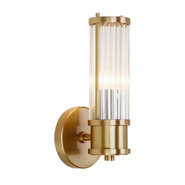 Art Deco Brass Vanity Light Fixture, Fluted Crystal Glass Wall Sconce for Bathroom Mirror & Hallway - 110V-120V 1