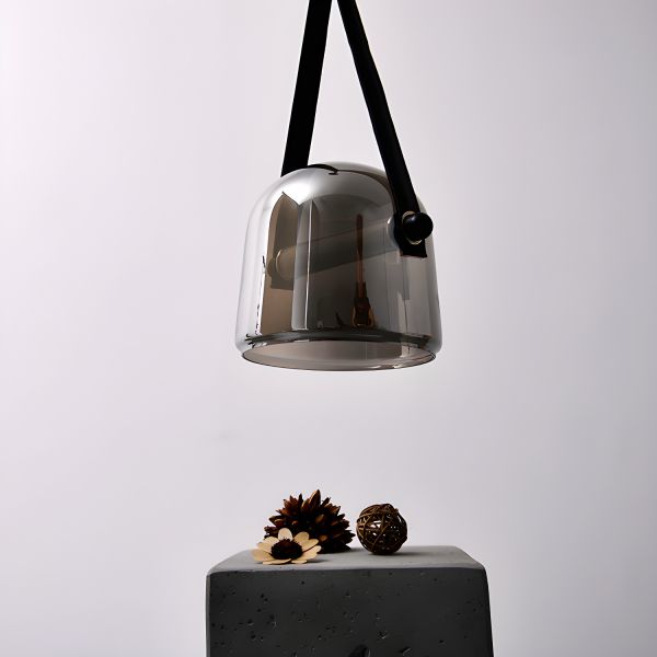 Contemporary Glass Dome Pendant Light with Leather Strap Accent for Dining Room and Kitchen Island - 110V-120V Black