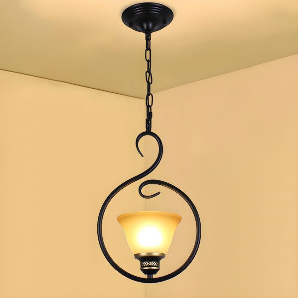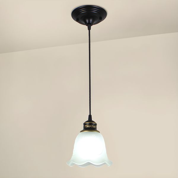 Vintage Black Pendant Light with Frosted Floral Glass Shade, Adjustable Hanging Fixture - Black 110V-120V Round 1