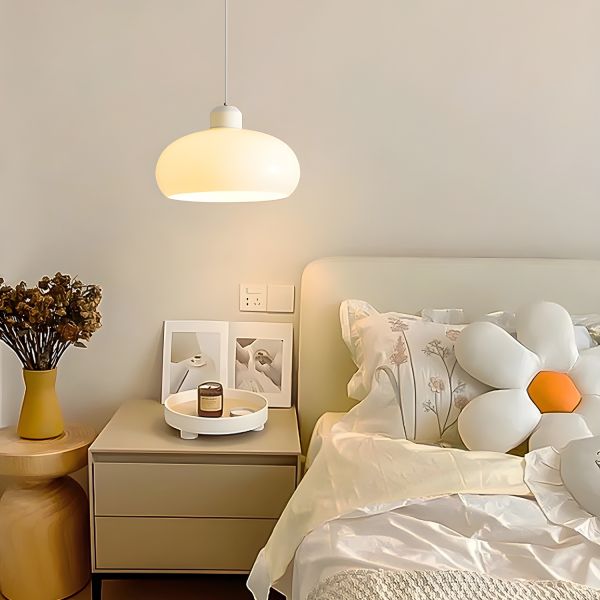 Bauhaus Mushroom Pendant Light Fixture, Mid-Century Retro Hanging Lamp with High CRI 97 LED, Cream & Yellow Accent Lighting for Dining Room Kitchen Island - 110V-120V Cream White