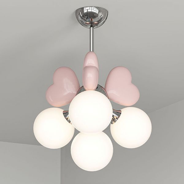 4 Lights Pendant Light with Adjustable Hanging Rod, Resin Cover, Surrounding Shade, Simplistic Style for Bedroom, Pink, 110V-120V