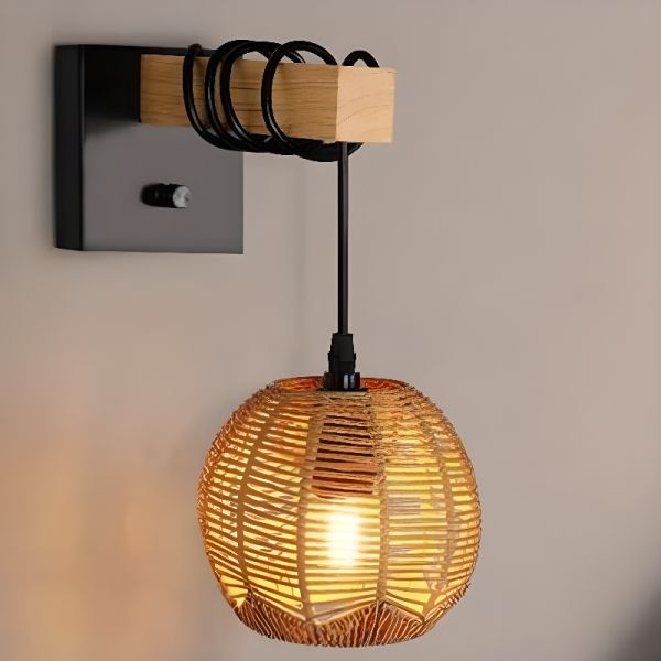 Japandi Style Lumber Wall Light with Down Shade, Direct-wired Wall Lamp Fixture for LED/Incandescent/Fluorescent, Residential Use, 110V-120V, Globe