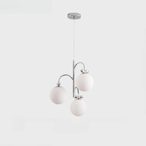 Chandelier with White Glass Shade, 3 Lights Ball, Contemporary Style, Drop Rod Mounting for Residential Use, LED/Incandescent/Fluorescent, 110V-120V