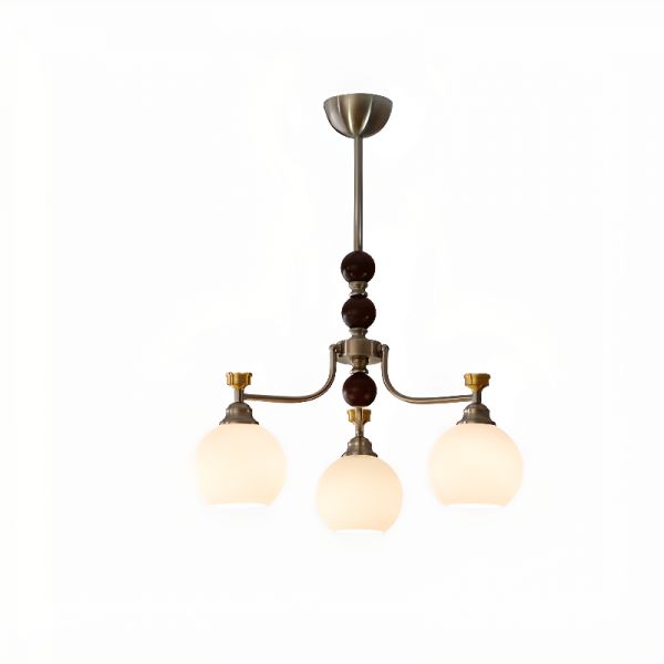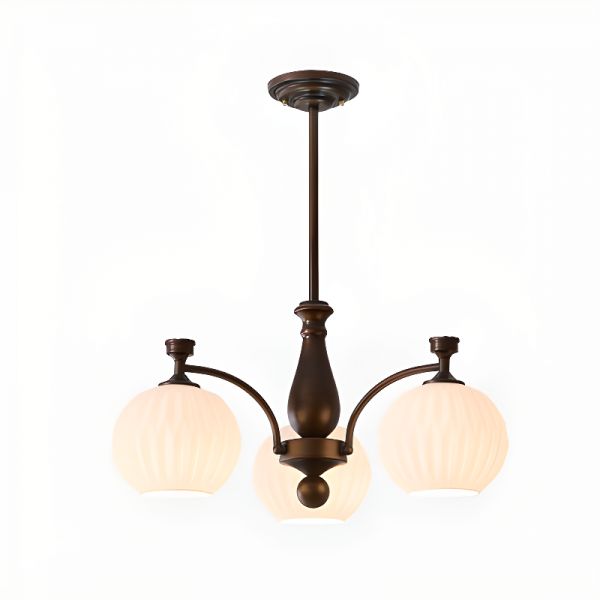 Adjustable Hanging Rod Chandelier with Milk Glass Shade, 3 Lights, Vitreous Cover, LED/Incandescent/Fluorescent Light for Drawing Room, 110V-120V, Globe