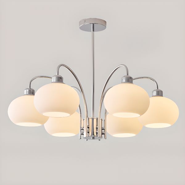 Modern Chandelier with Bi-pin Light, Milk Glass Cover, 6 Lights for Drawing Room, Vitreous Shade, 110V-120V
