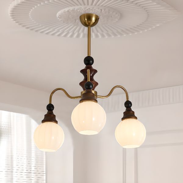 Modern Chandelier with Milk Glass Shade, 3 Lights Cover for Drawing Room, LED/Incandescent/Fluorescent, Vitreous, 110V-120V