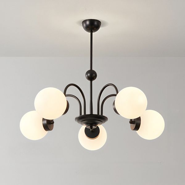 Adjustable Height Contemporary Ball Chandelier with 5 Lights, White Glass Shade, and Drop Rod for Residential Use, 110V-120V