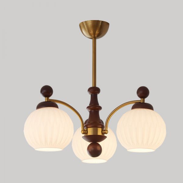 Chandelier Light with White Glass Shade, 3 Lights, Globe Fixture, and Downrods for Drawing Room, 110V-120V