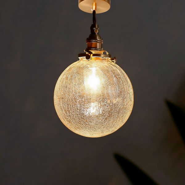 Crackle Glass Ceiling Lamp, Golden Globe Fixture with Tether Mounting, Vitreous Material for Residential Use, Ultra Modern Style, 110V-120V, Globe, Transparent/Gold