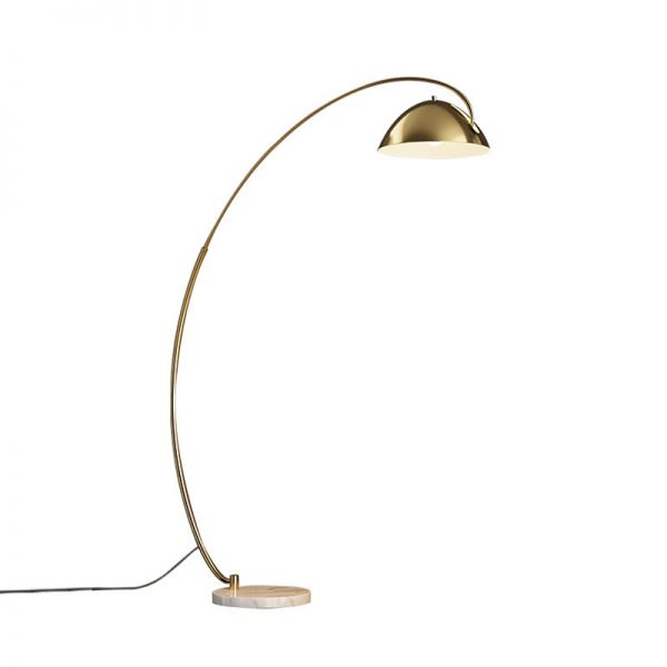 Mid-Century Arc Floor Lamp with Solid Marble Base, Tall Curved Metal Standing Light for Living Room and Bedroom Reading - 110V-120V Gold