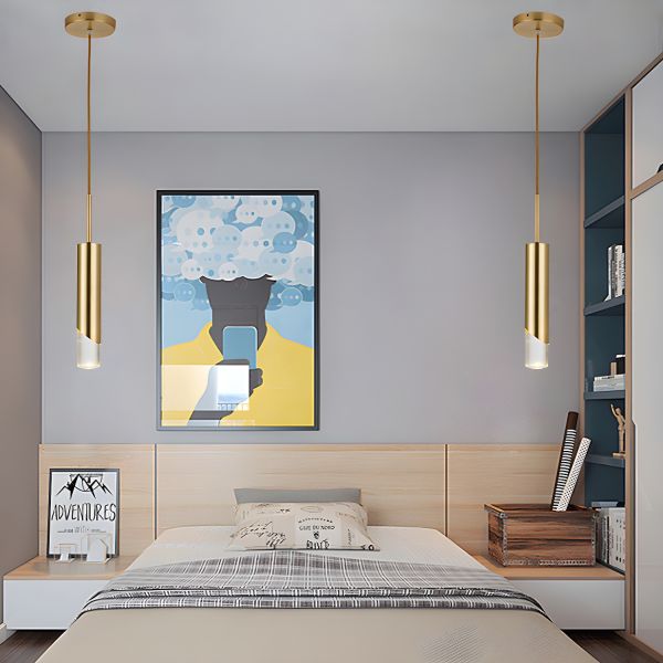 Contemporary Minimalist Cylinder Pendant Light, Brushed Metal & Acrylic Hanging Fixture - 110V-120V Gold 1