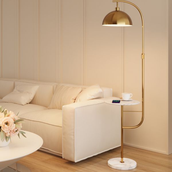 Mid-Century Floor Lamp with Integrated Tray Table and Weighted Marble Base for Living Room - 110V-120V Marbling