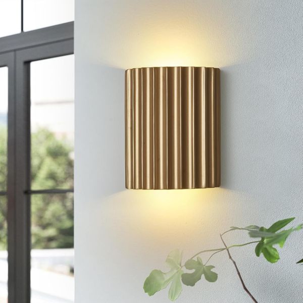 Art Deco Fluted Wall Sconce, Ribbed Hardwired Light Fixture with Bidirectional Illumination - Gold 110V-120V