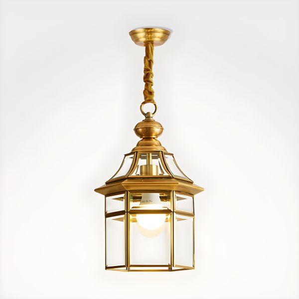 Transitional Solid Brass Outdoor Pendant Light, Glass Lantern Chandelier for Entryway & Porch - 110V-120V 1