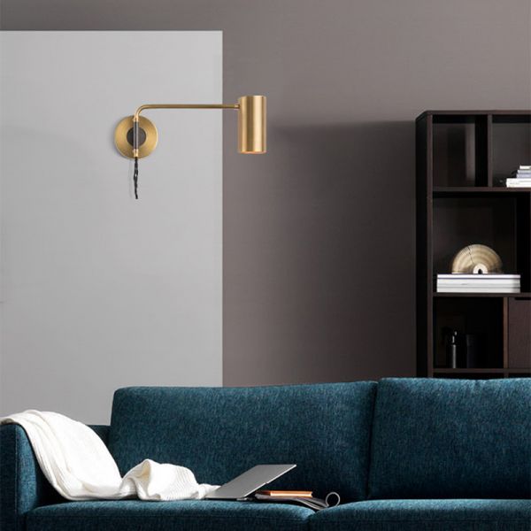 Minimalist Retractable LED Bedside Reading Light, Adjustable Recessed Wall Sconce with Integrated Switch - 110V-120V Cylinder Black/Gold
