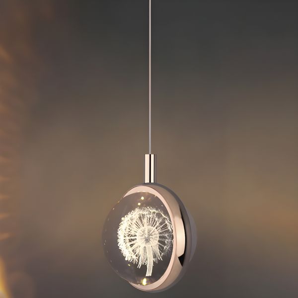 Nordic Gold LED Pendant Light with 3D Laser Engraved Crystal Ball, Creative Hanging Lamp for Bedroom - 110V-120V Dandelion