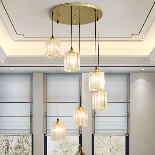 Industrial Luxe Cylinder Pendant Light, Fluted Glass Hanging Lamp for Dining - 1 Gold 110V-120V