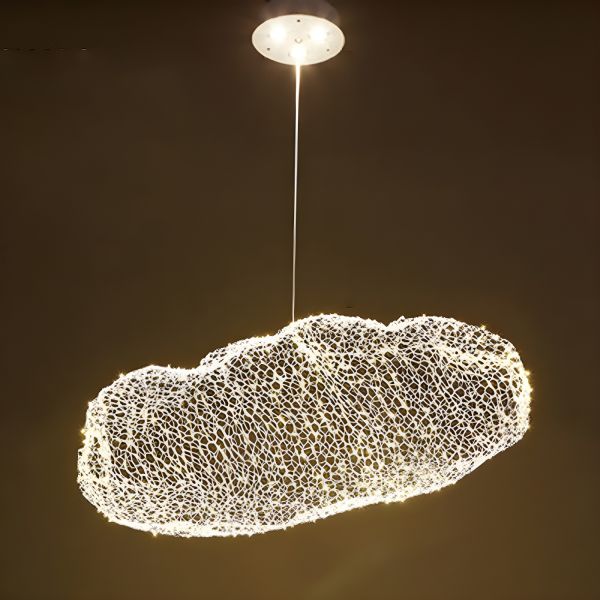 Contemporary Sculptural Cloud Pendant Light, Hand-Woven Wire Mesh LED Chandelier with Canopy Spotlights - 110V-120V Gold 16"