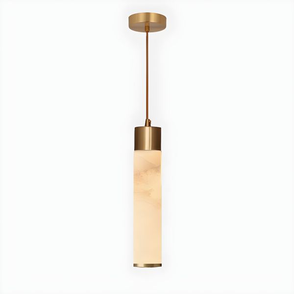 Mid-Century Modern Alabaster Pendant Light, Brass Cylinder Hanging Lamp for Kitchen Island or Bedside - 110V-120V 2.5"