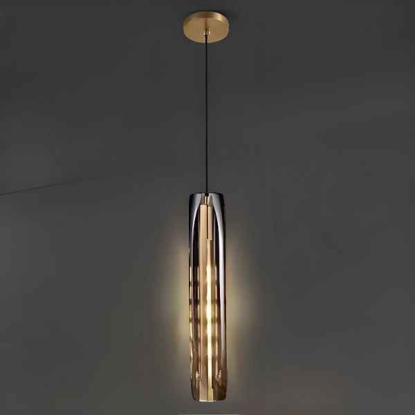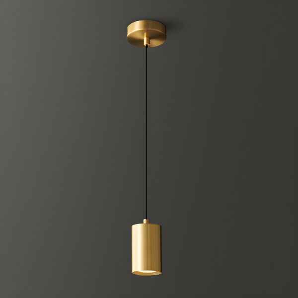 Sleek Cylindrical Pendant Light, Minimalist Metal Hanging Fixture for Kitchen Island and Bedside, Adjustable Cord - 110V-120V Gold