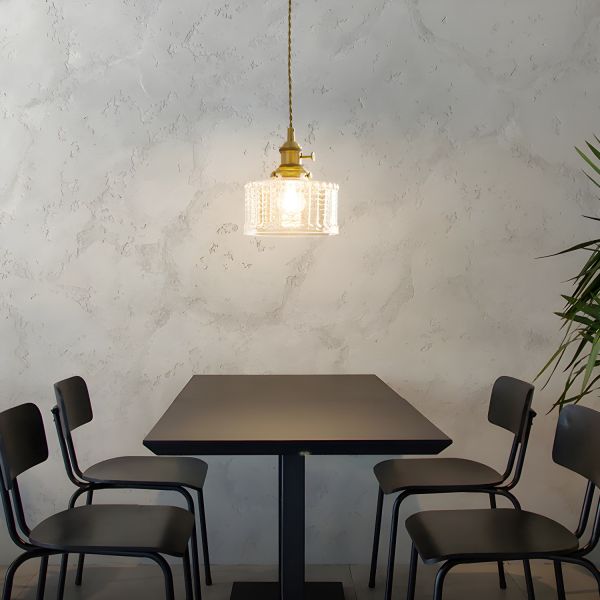 Mid-Century Brass Glass Pendant Light, Adjustable Mini Hanging Fixture for Kitchen Island or Bar - 110V-120V Cylinder