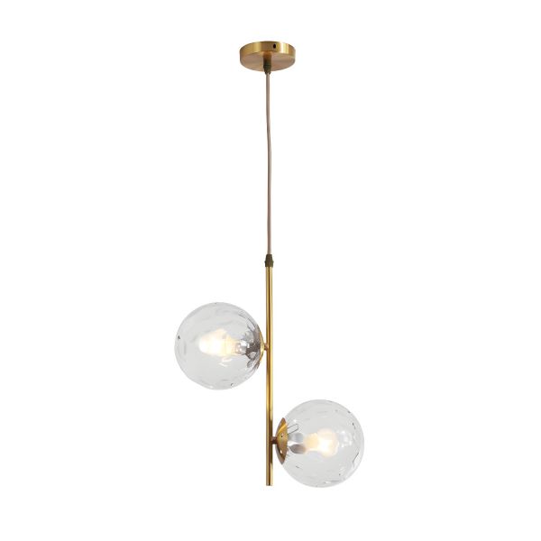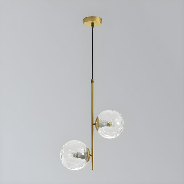 Mid-Century Modern 2-Light Vertical Pendant, Textured Glass Globe Chandelier for Dining Room - 110V-120V Gold Clear