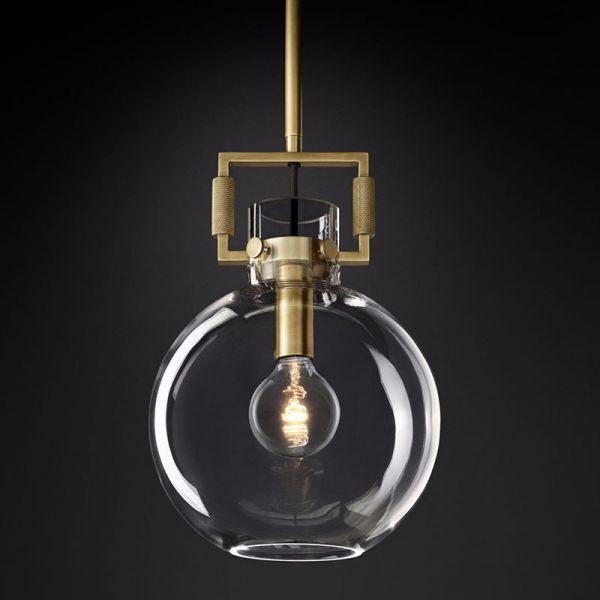 Industrial Modern Glass Pendant Light, Metal Framed Hanging Lamp with Clear Shade for Kitchen Island - 110V-120V Gold Globe