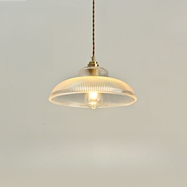 Vintage Industrial Ribbed Glass Pendant Light with Brass Finish Hardware for Kitchen Island - Clear 110V-120V 12.5" Barn