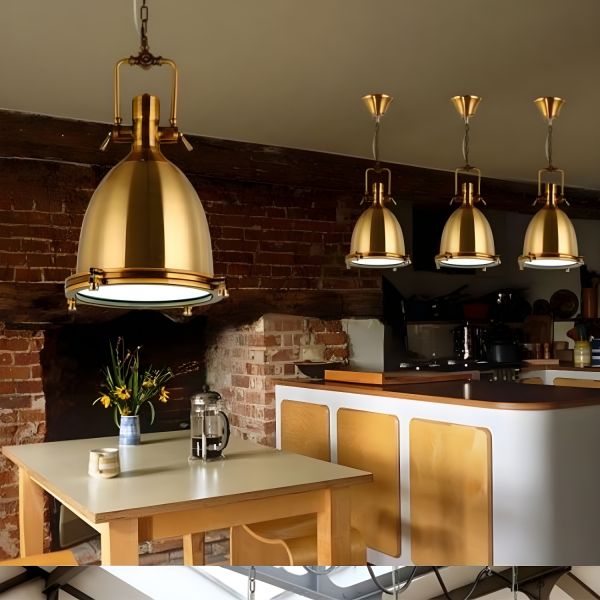 4 Color Optional Industrial Hanging Lamps with Dome Shade for Kitchen Restaurant - 110V-120V 14" Gold
