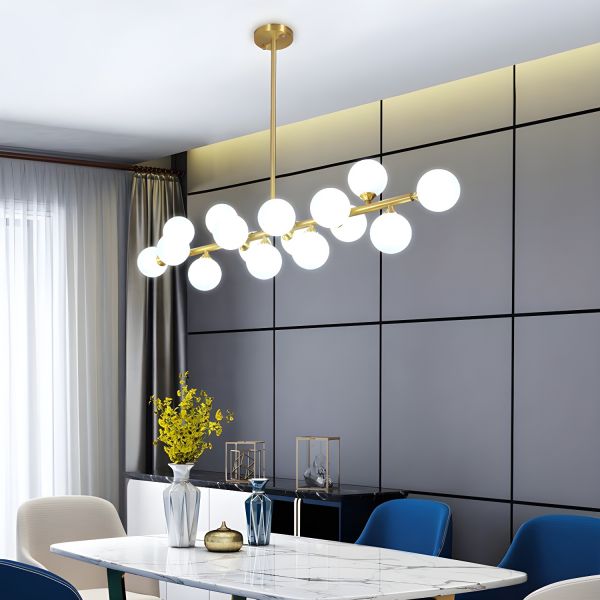 Mid-Century Linear Chandelier, Brass Sputnik Pendant Light with Glass Globes for Dining Room - 110V-120V Frosted