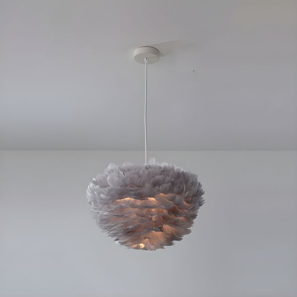 Nordic Real Goose Feather Pendant Light, Soft Ambient Glow Chandelier - 110V-120V Grey 12"