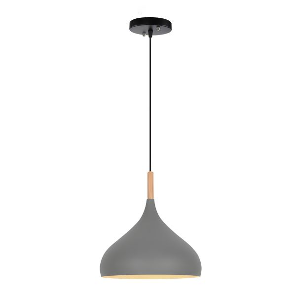 Scandinavian Modern Two-Tone Pendant Light, Metal & Wood Accent Fixture for Kitchen & Bedroom - 110V-120V Grey