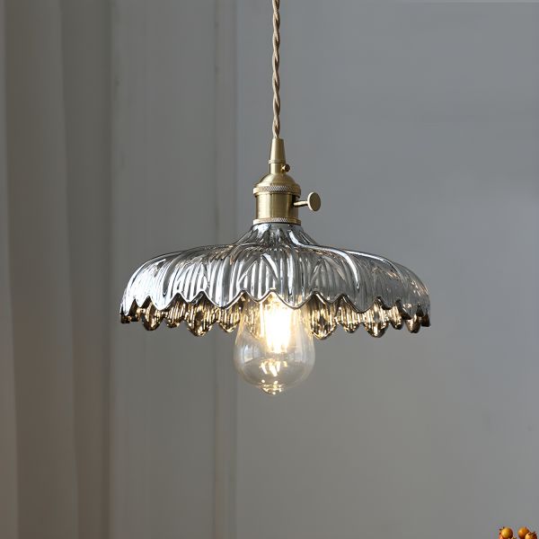 Vintage Ribbed Glass Pendant Light, Brass Hanging Lamp for Kitchen Island - 110V-120V Smoke Gray 1