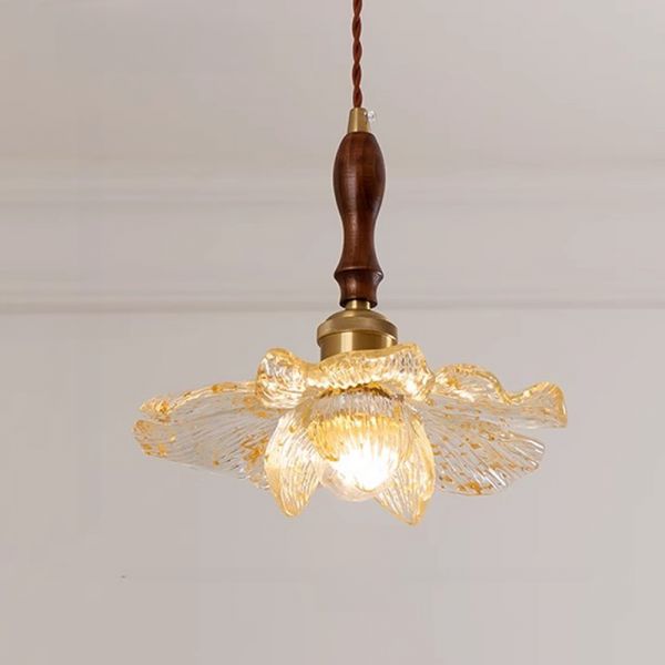 Wood Lotus Leaf Pendant Lighting Modern 1 Head Bamboo Hanging Lamp for Restaurant - 110V-120V Wood Color 14"