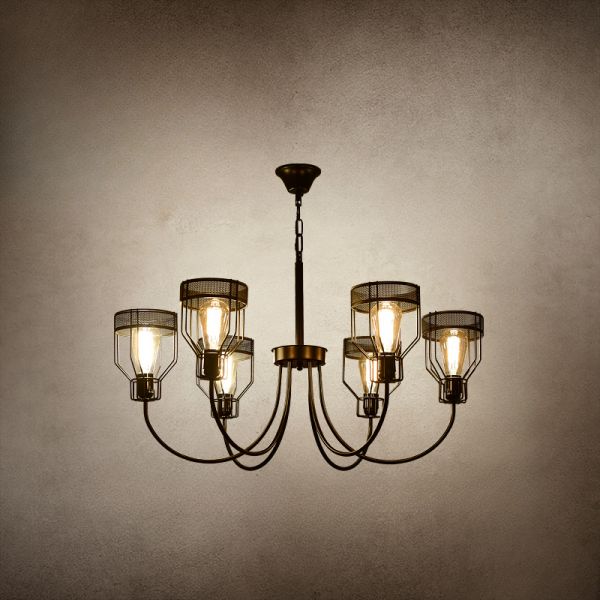Midnight Black Commercial Retro Light Chandelier with Adjustable Chain, 6, 110V-120V