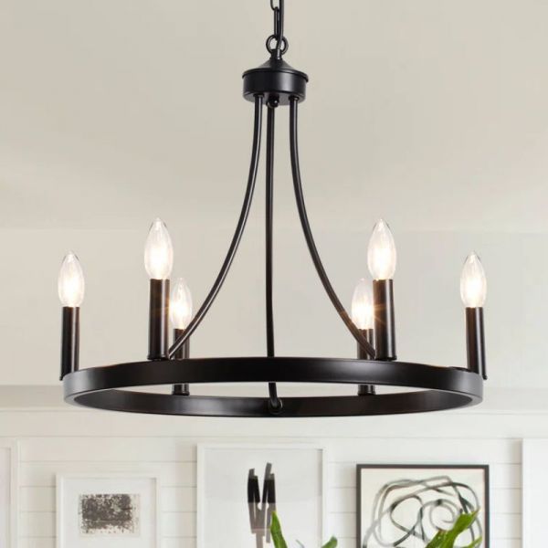Rustic Farmhouse Wagon Wheel Chandelier 6-Light Metal Pendant for Dining Room Kitchen Island Entryway - 110V-120V Black