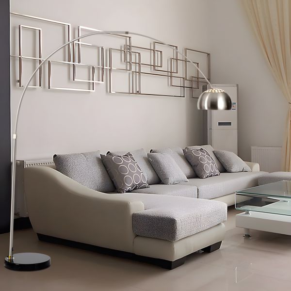 Mid-Century Arc Floor Lamp, Stainless Steel Standing Light with Heavy Base and Perforated Dome Shade - 110V-120V Stainless/Steel 35.5"