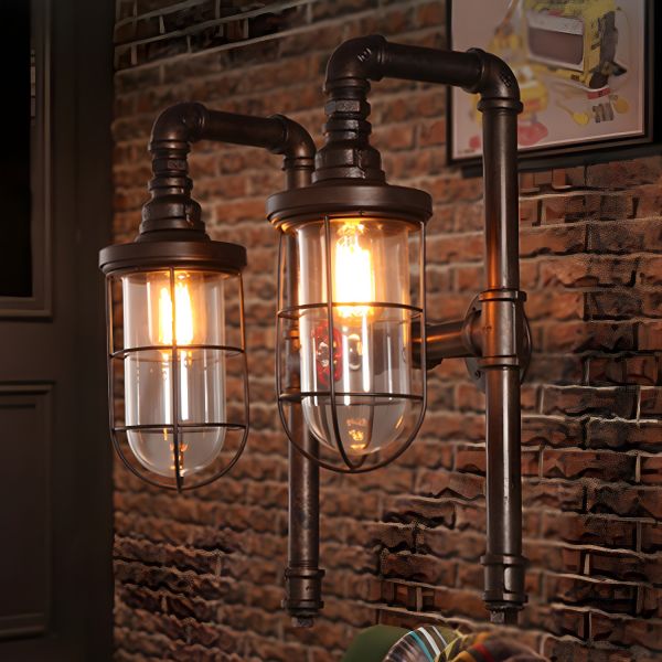 Industrial Steampunk Wall Sconce Metal Cage Wire Guard Vintage Pipe Lamp for Hallway Entryway - 110V-120V
