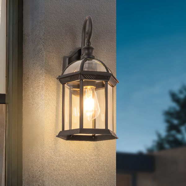 Classic Outdoor Wall Lantern, Weather-Resistant Hexagonal Porch Sconce with Clear Glass Shade - 110V-120V Black 12.5"
