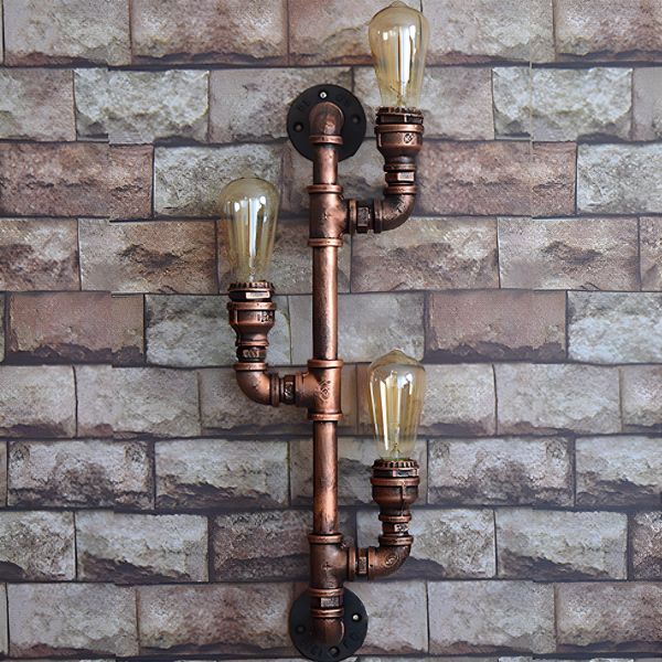 Industrial Steampunk 3-Light Water Pipe Wall Sconce, Antique Bronze Metal Fixture for Hallway or Vanity Lighting - 110V-120V Bronze