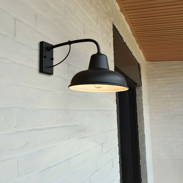 Industrial Farmhouse Barn Light Sconce, Weatherproof Outdoor Gooseneck Fixture with Black Metal Shade - 110V-120V 12" Right Angle